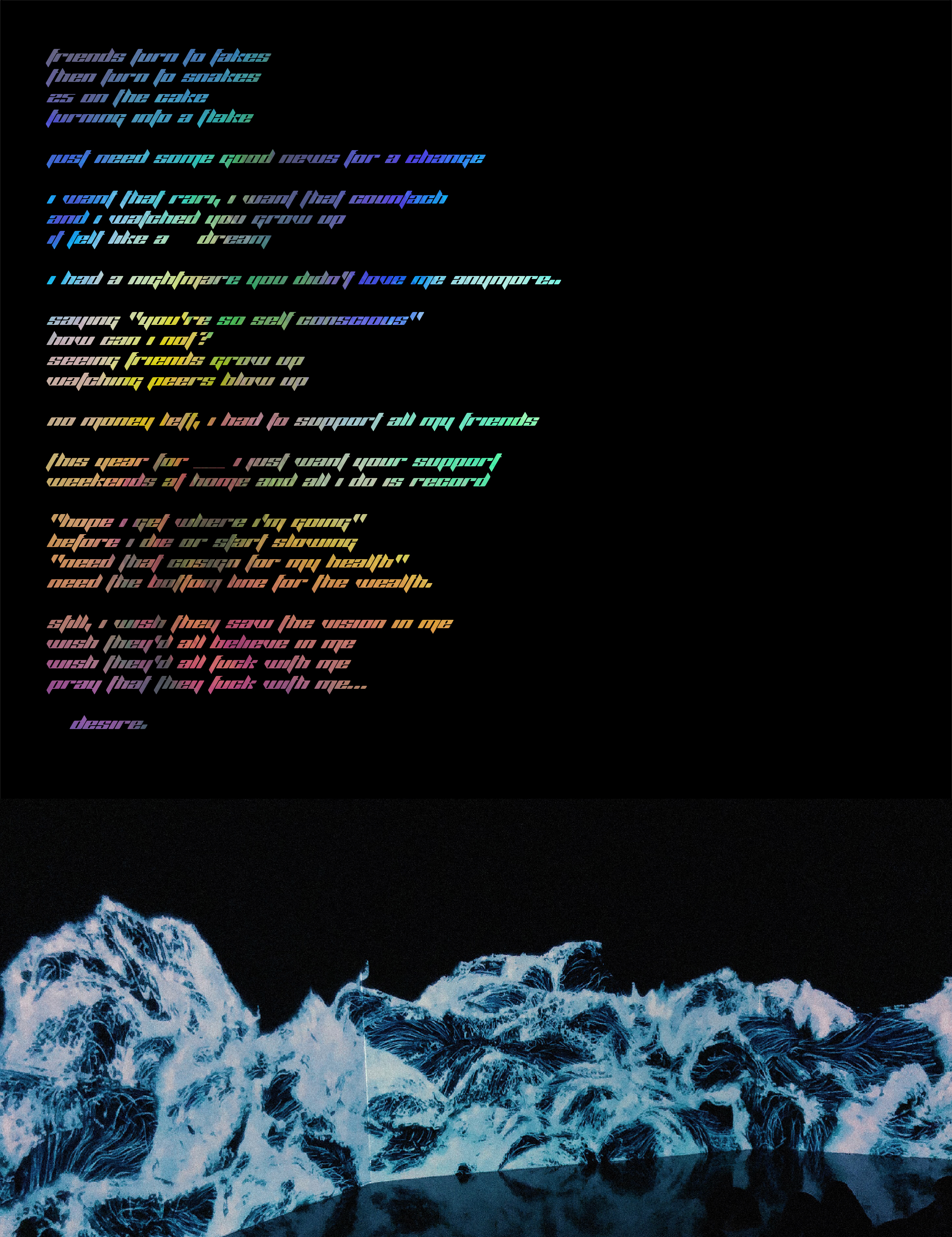 Notes: I wanted to make a pop punk-style song that basically tells a story of heartbreak contrasted against a really sugary instrumental. The song is a nod to pop punk bands I grew up with like All Time Low and Cute Is What We Aim For. The auto-tuned baby voice is inspired by Playboi Carti. I wanted to make the two concepts contrast each other and form a dichotomy- on the surface it sounds like a cheery song, dense with reverb and a lush acoustic guitar, but if one reads the actual lyrics it actually paints a grim picture of an unhealthy obsession.